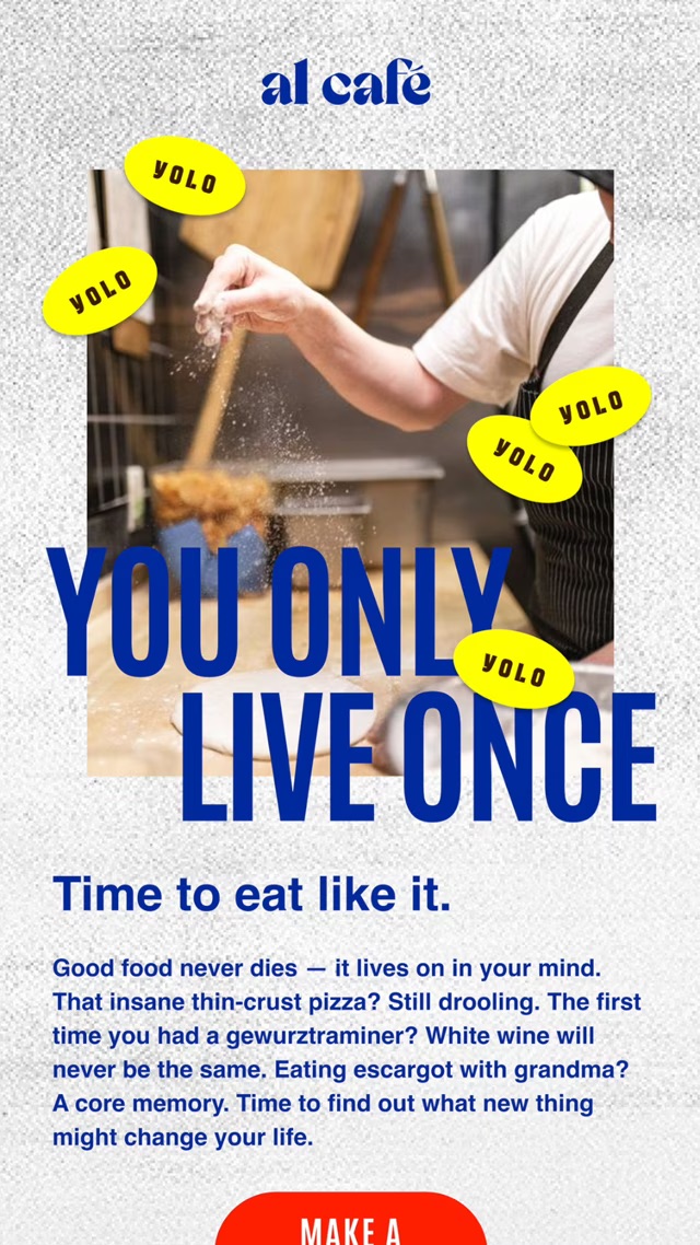 Welcome to A1 Café, fam. A restaurant email series whose copy needed to be just as funny as their stand-up nights, and relatable for patrons and industry insiders.